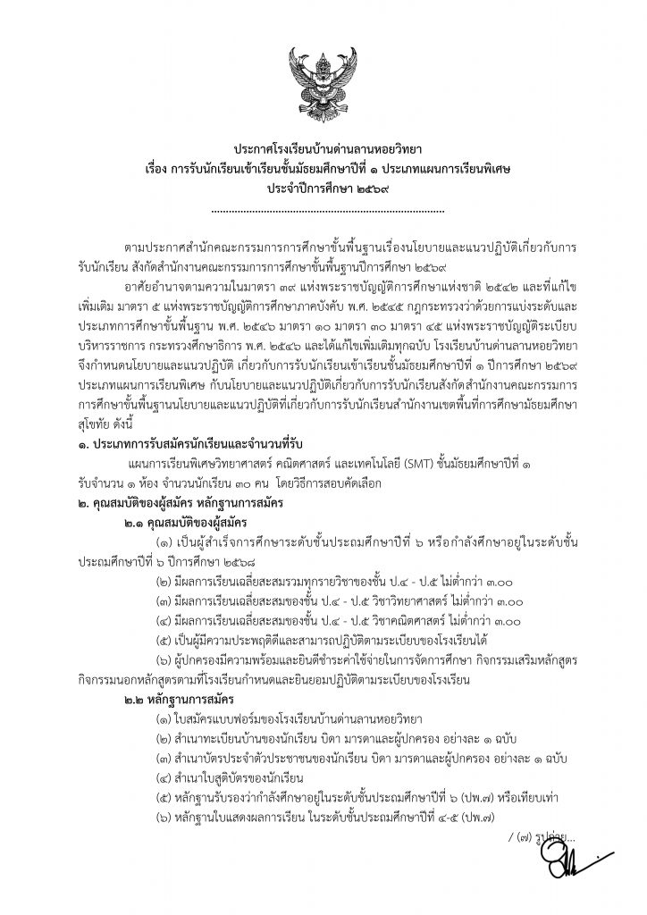 เรื่อง การรับนักเรียนเข้าเรียนชั้นมัธยมศึกษาปีที่ 1 ประเภทแผนการเรียนพิเศษ ประจำปีการศึกษา 2569 3 สัปดาห์ ago ประกาศ 54 Views